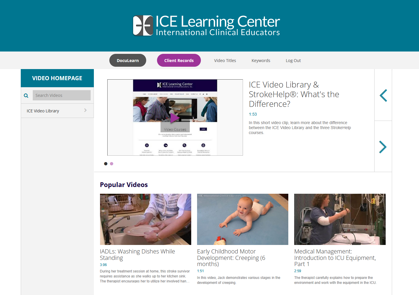 ICE Learning Center provides innovative streaming video collections of real patients and therapists. Provides examples of patient scenarios based on the system of the body.